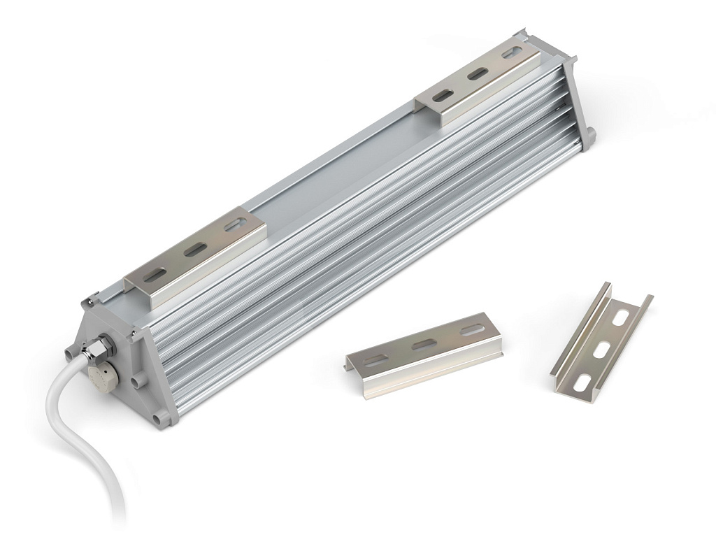 - универсальные крепежи светильника: DIN-рейка, рым-болт или регулируемый поворотный кронштейн;