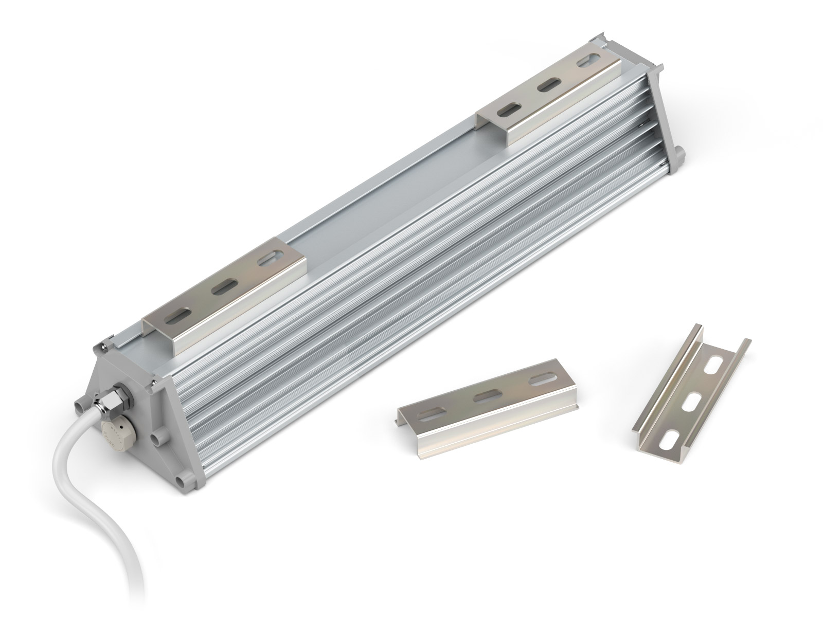- универсальные крепежи светильника: DIN-рейка, рым-болт или регулируемый поворотный кронштейн;