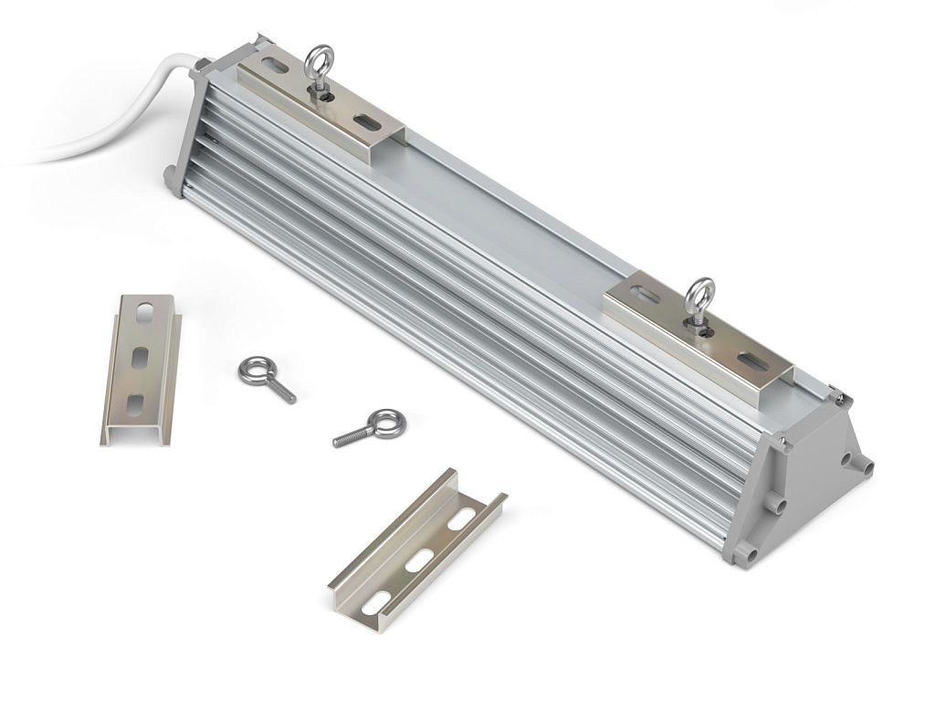- универсальные крепежи светильника: DIN-рейка, рым-болт или регулируемый поворотный кронштейн;